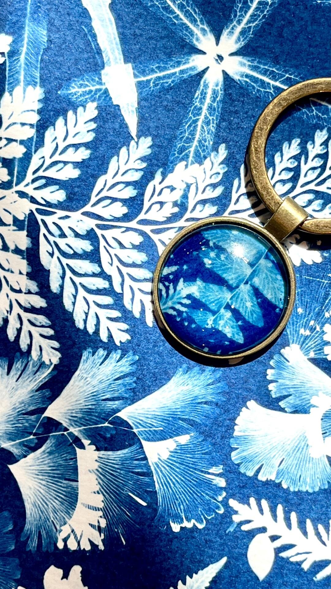 藍曬是運用陽光、空氣、水為主的創作媒材,其『曬』的工藝顧名思義就是巧妙掌握「曬太陽的時間」,在各種可能載體上,利用覆蓋物的形狀(列如葉子、紙板等等)曬製出不同深淺層次的藍色鐵化合物。